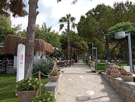 Eingang von der Strandpromenade aus, rechts die Beach Bar