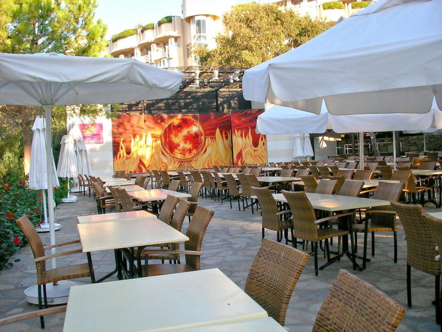 Strandlokal mit Blick auf die Bühne