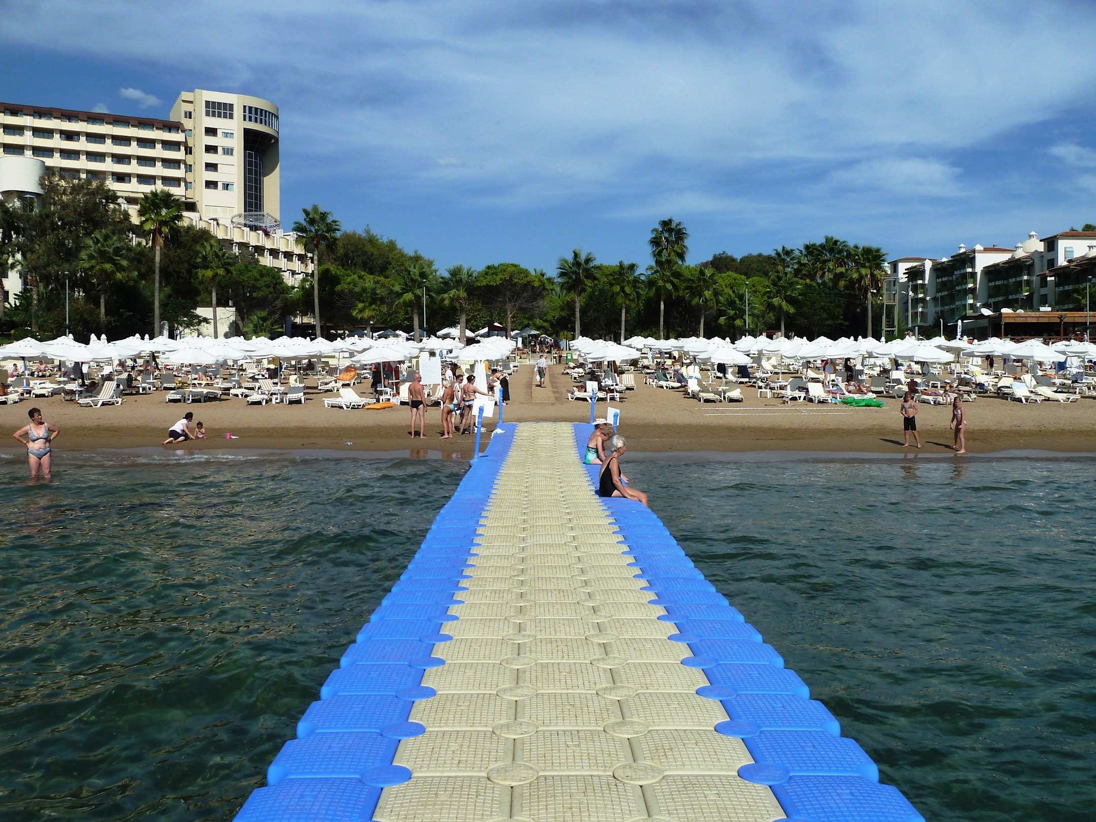 Der neue Badesteg mit Blick auf dem Hotelstrand
