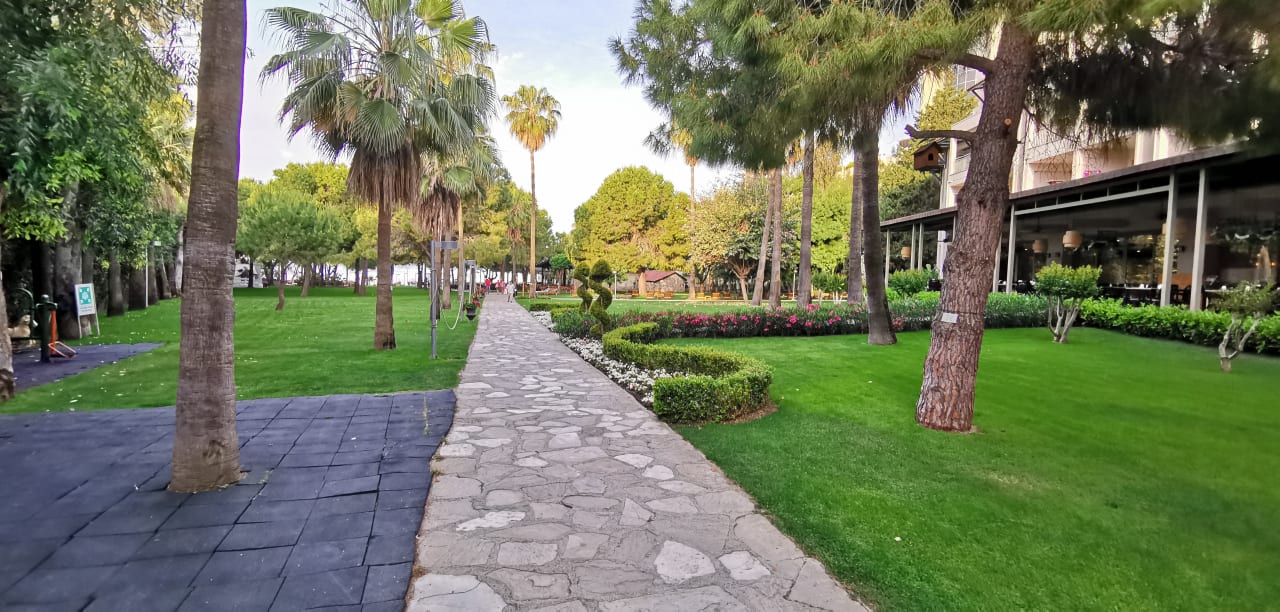 Weg von der Anlage zum Strand, rechts das Hauptrestaurant