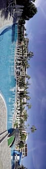 Pool und Hotel von Straßenseite ausPanorama-Aufnahme.