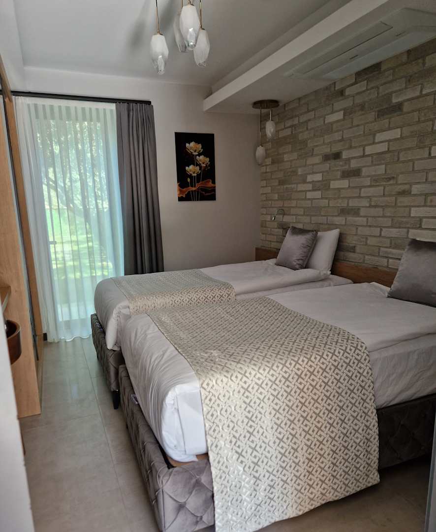 ZimmerWir durften uns eine Villa für 4 Personen anschauen. Im unteren Bereich gibt es zwei getrennte Betten und ein eigenes Bad mit Dusche.