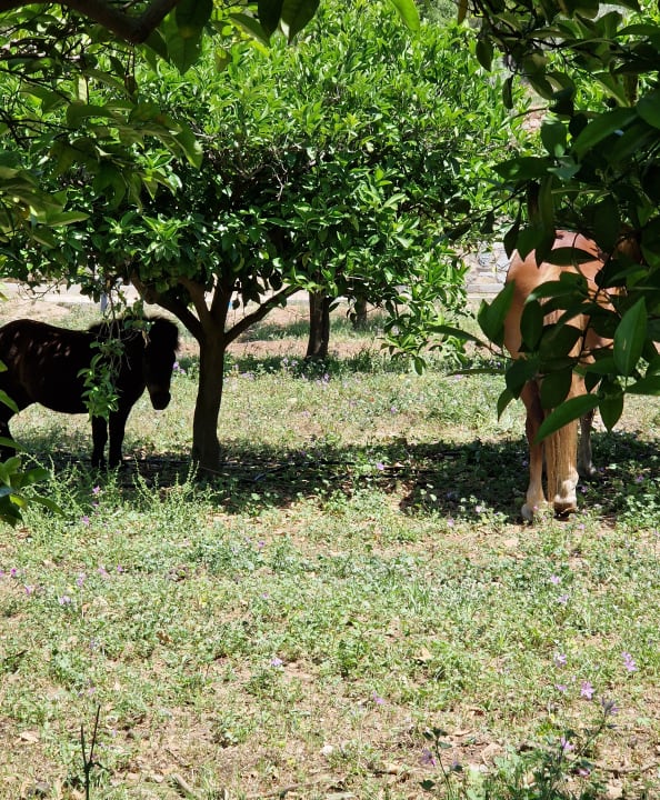 Es gibt zwei Ponys in der Anlage