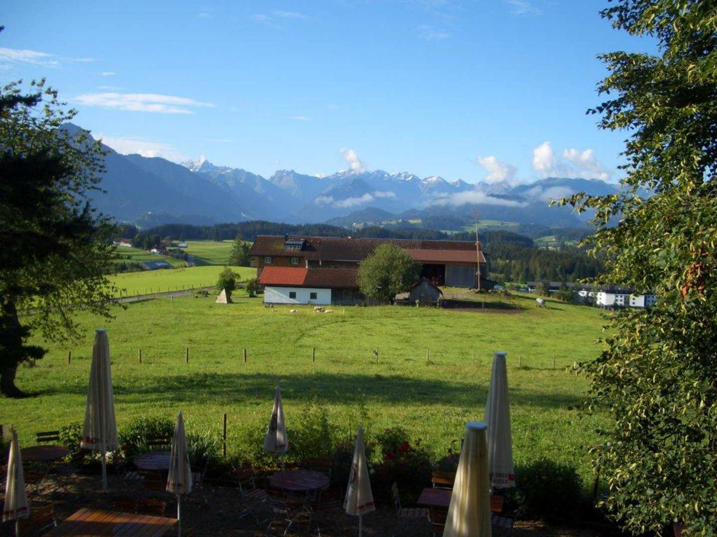 Blick vom Balkon auf die Berge von Obersdorf
