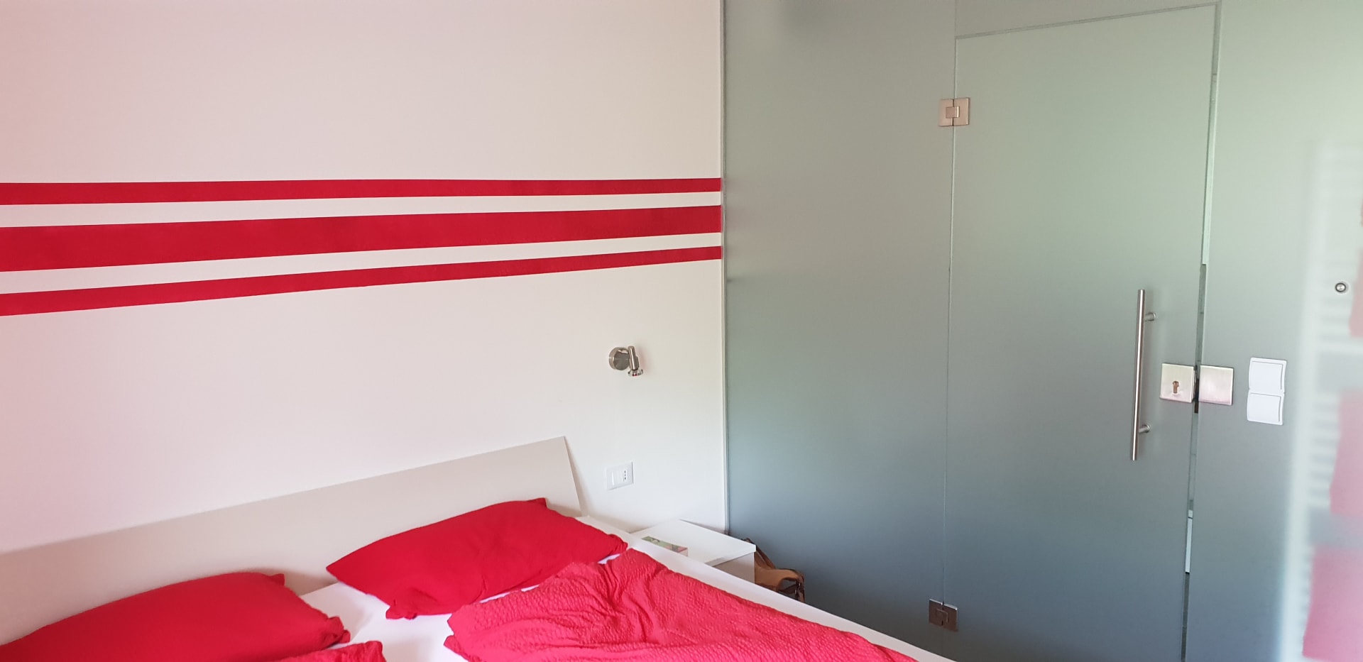 Unser Schlafzimmer mit Zugang zum innen liegenden Badezimmer.