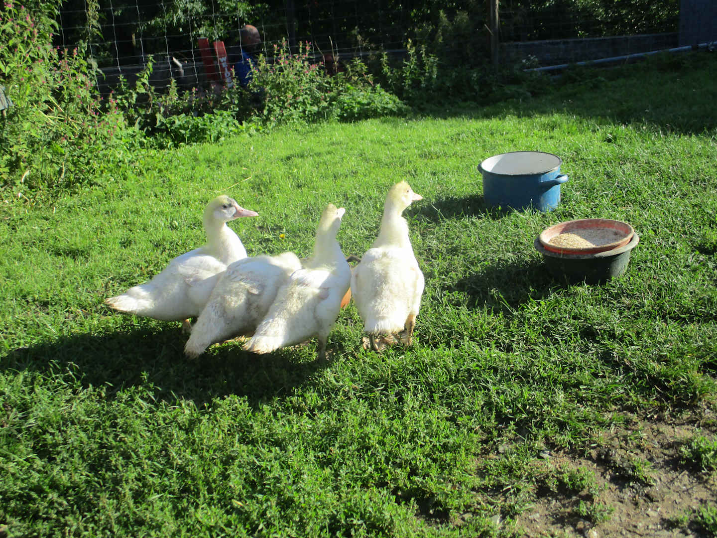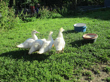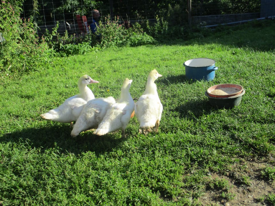 SonstigesGänse und Enten können morgens und abends von den Gästen (auch Kindern) aus dem Stall auf die Wiese und zurück getrieben werden.