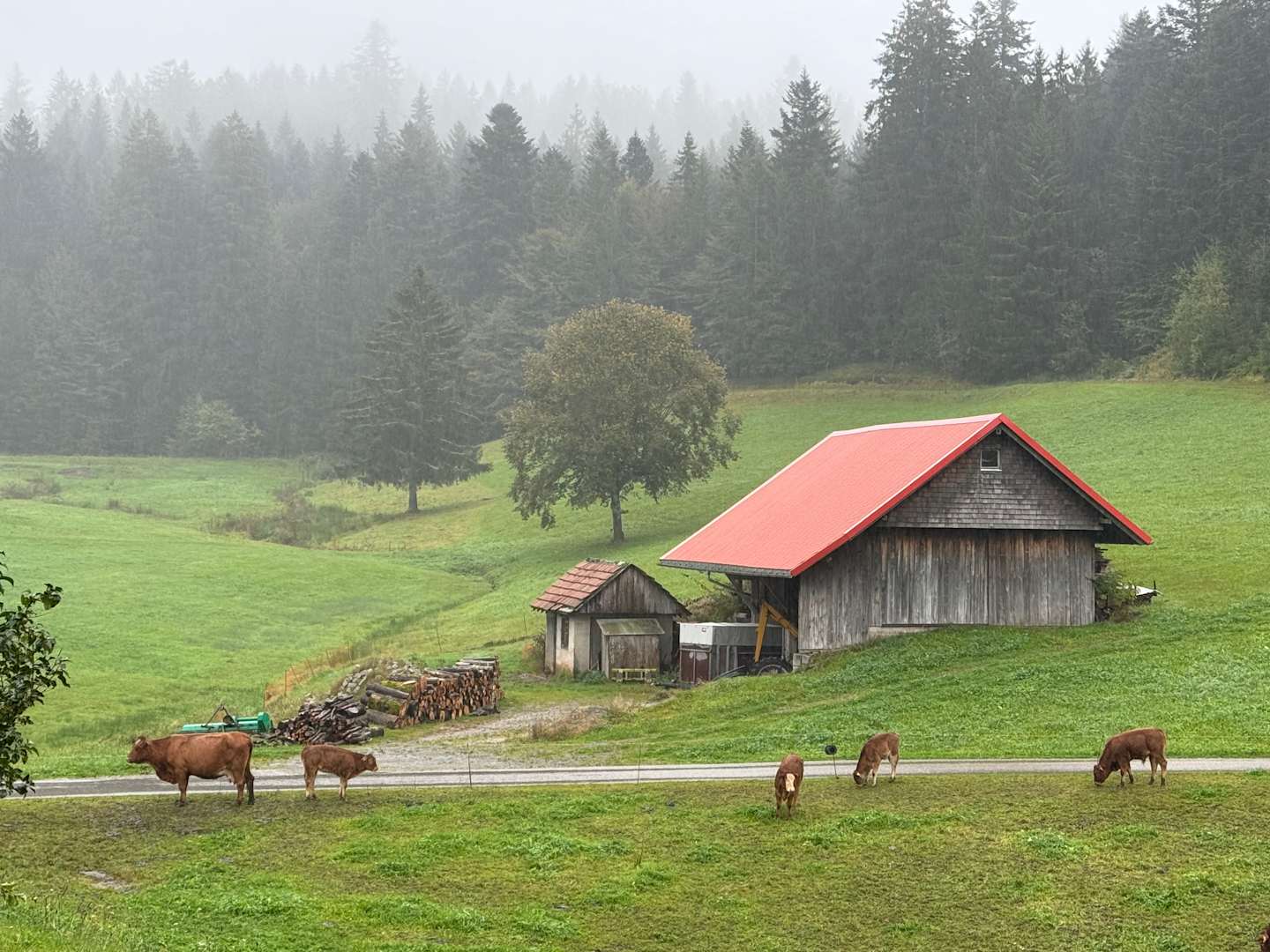 Am Hof im Regen.