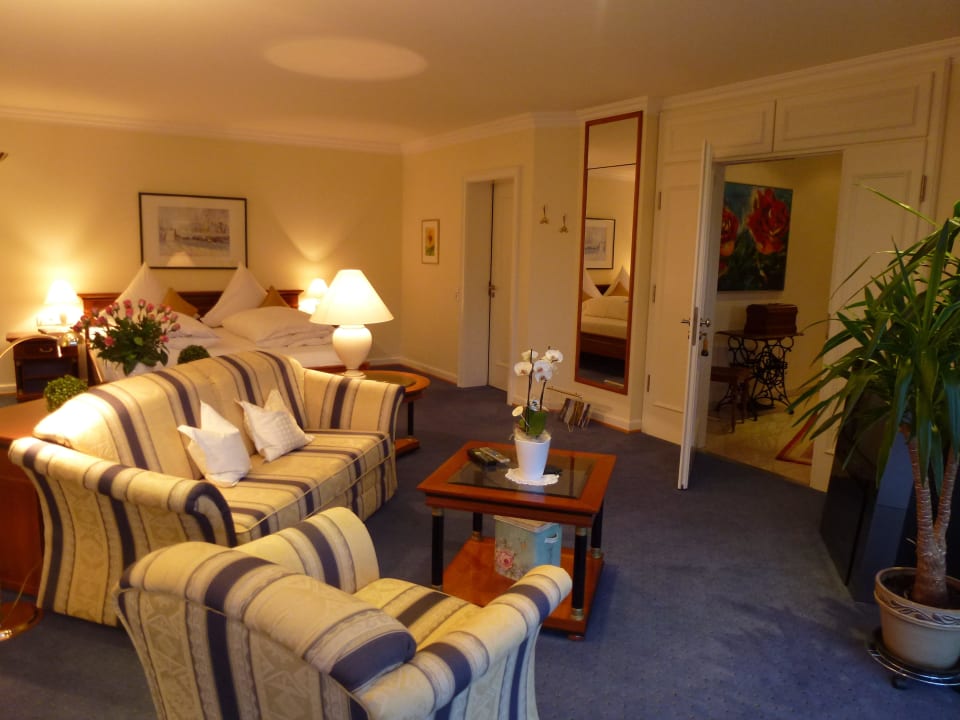 Der Wohnbereich mit Schlafsofa und Sessel