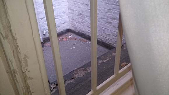 Schmutzige Fenster hinter Gittern