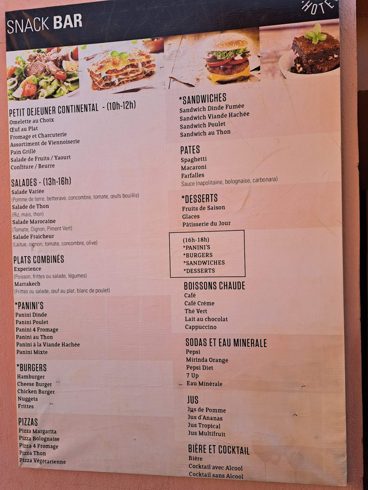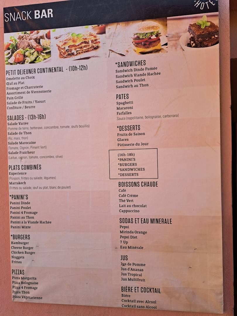 Speisekarte Snack-Bar