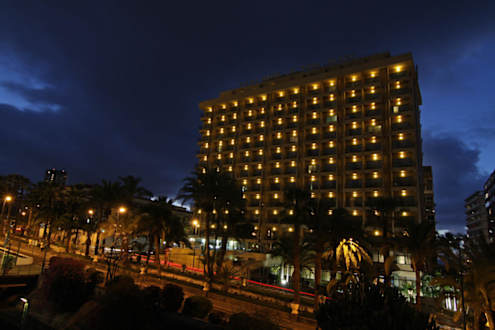 Außenanblick des Hotels am Abend.