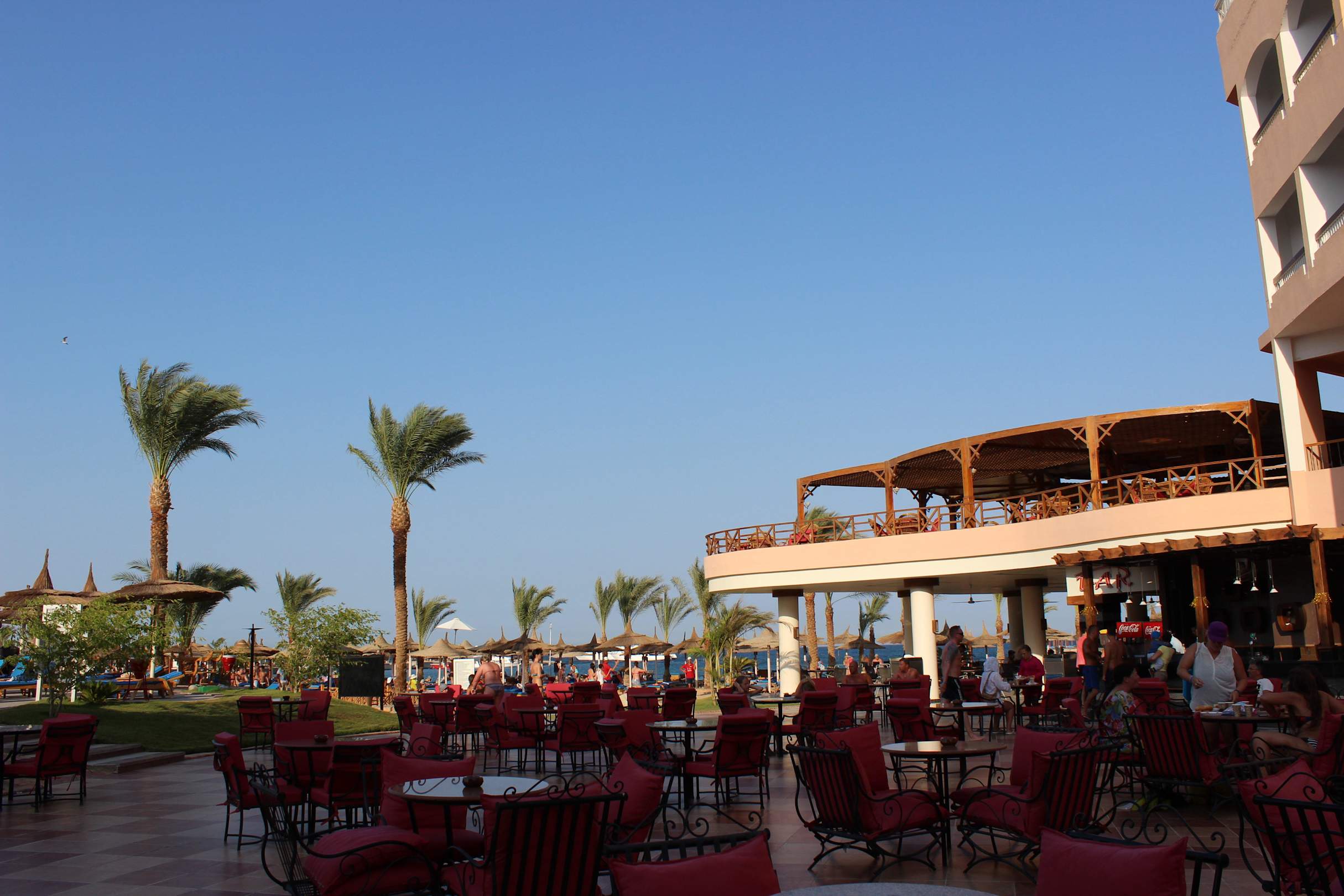 Das Strandrestaurant im Hintergrund Beach Albatros Resort