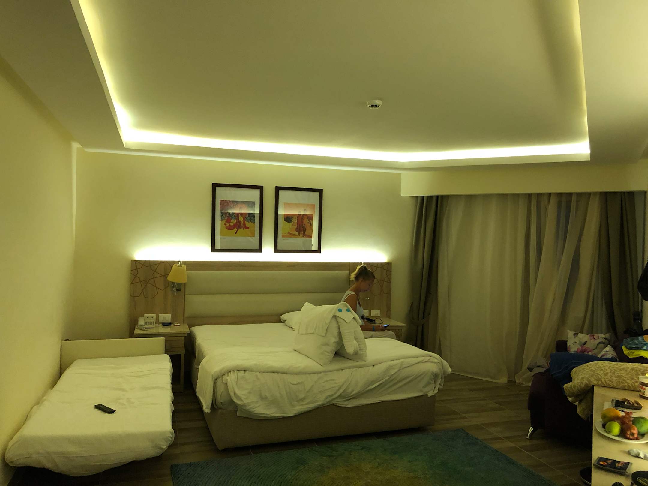 ZimmerDas Beistellbett trübt den Gesamteindruck des Zimmers nur geringfügig. Die Couch hat eine schlaffunktion.