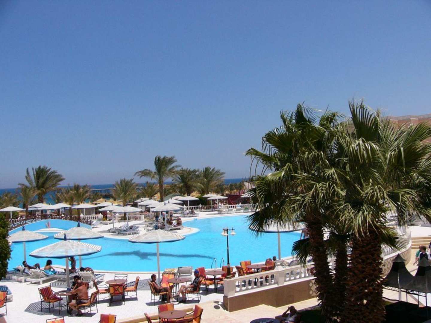 Blick auf die ältere Poolanlage vom Restaurant aus