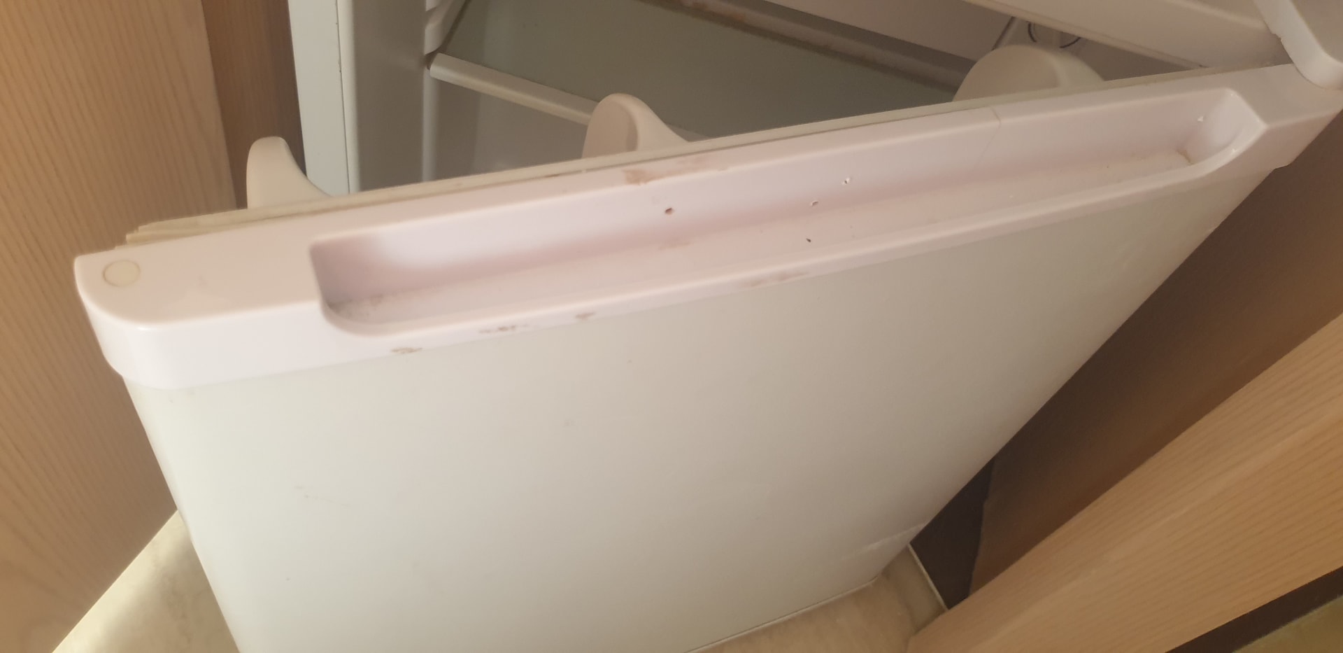 Leere "Mini-Bar", mit Schimmel an den Dichtungen.