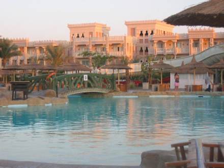 Pool Nähe der Rutsche, Beach Albatros, HurghadaDer Pool mit Blick auf das Nachbarhotel bei Sonnenuntergang