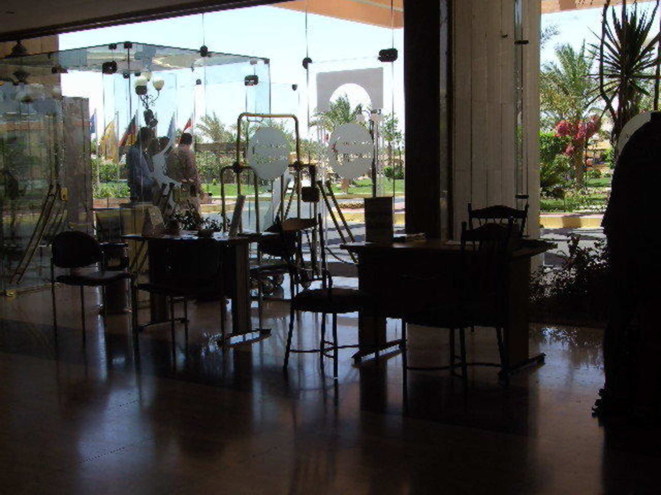 abends besetzt, daneben Reiseleitertisch für das russische Reiseunternehmen