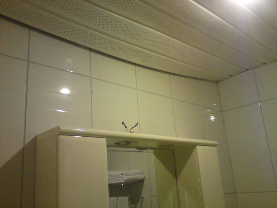 Zimmer J701elektrik der beleuchtung deutlich sichtbar und Zimmerdecke schlampig verbaut / durchgebogen