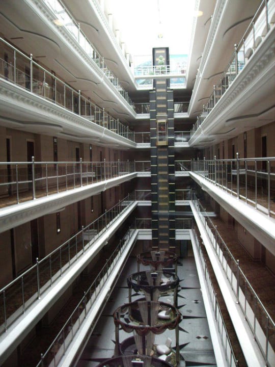 Überdachte Innenansicht der Zimmergänge