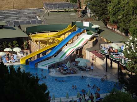 Poolanlage aus Sicht des Hotelzimmer