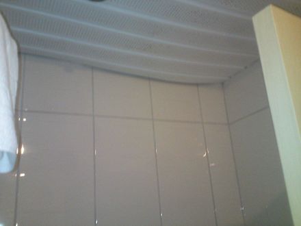 Decke im Badezimmer vermutlich durch Wasserschaden durchgebogen