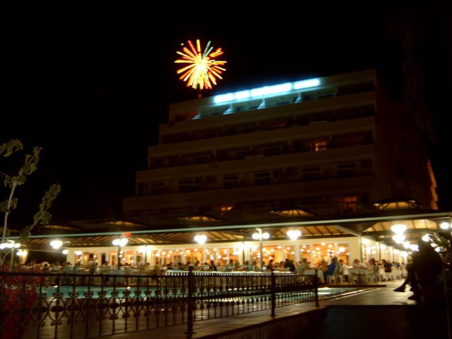 Abends im Hotel Blick vom Pool aus Richtung Speisesaal