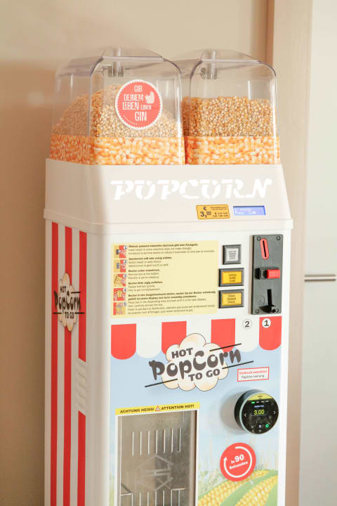 Frisches Popcorn aus der Popcornmaschine für den Filmabend