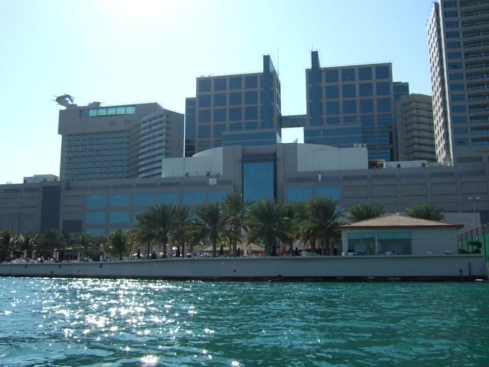 Blick auf die Hotelanlage vom Meeresarm ausMan sieht die Poollandschaft und die Mall, im linken Teil sind die Towerzimmer sichtbar. Hier wird deutlich, das auf Grund der Höhe des Gebäudes in den Wintermonaten die Sonne nur kurz in der ganzen Poollandschaft scheint.