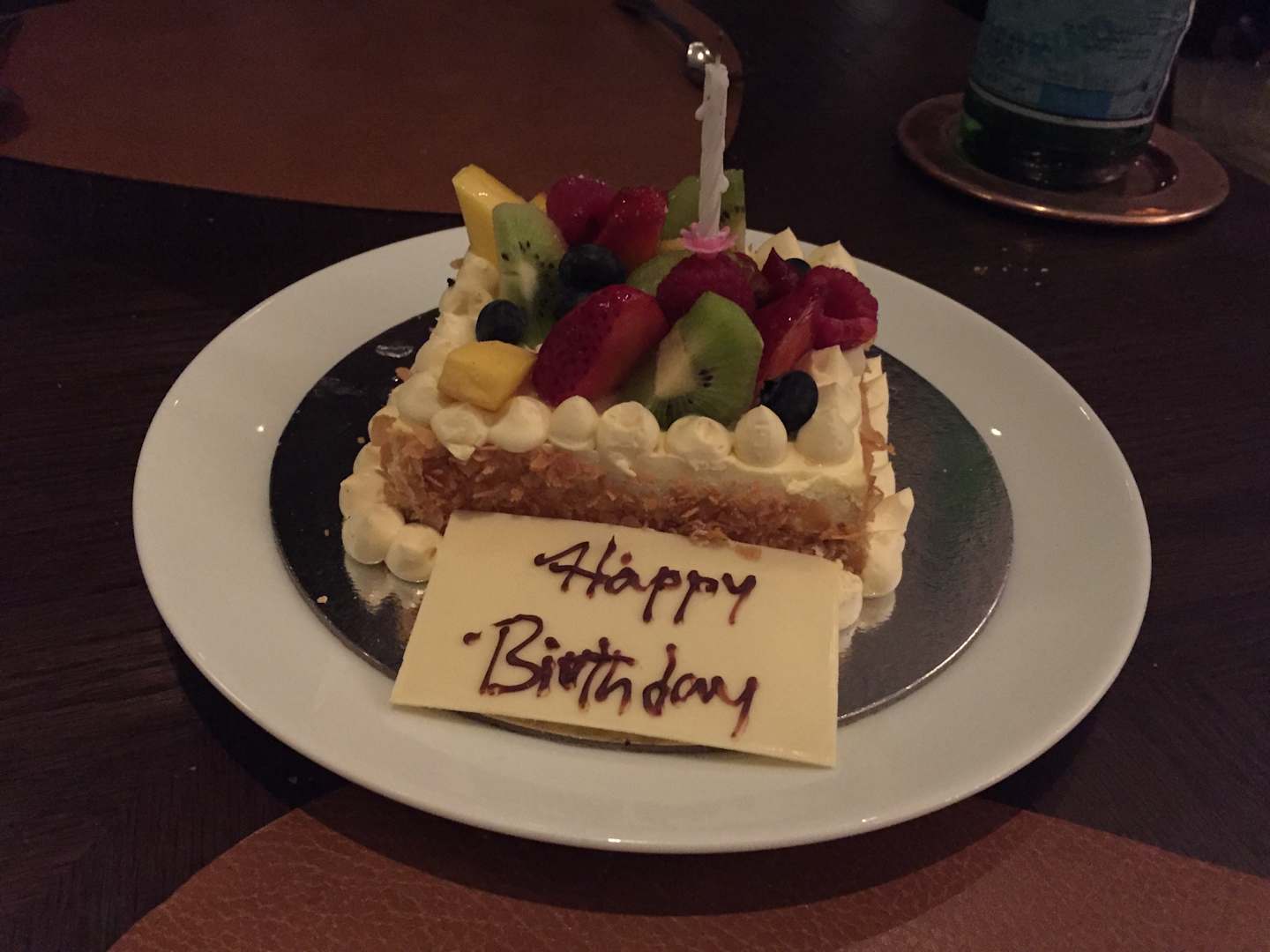 Geburtstagskuchen abends serviert im Steakhaus