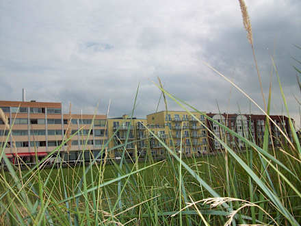 Blick zum Hotel über den Deich