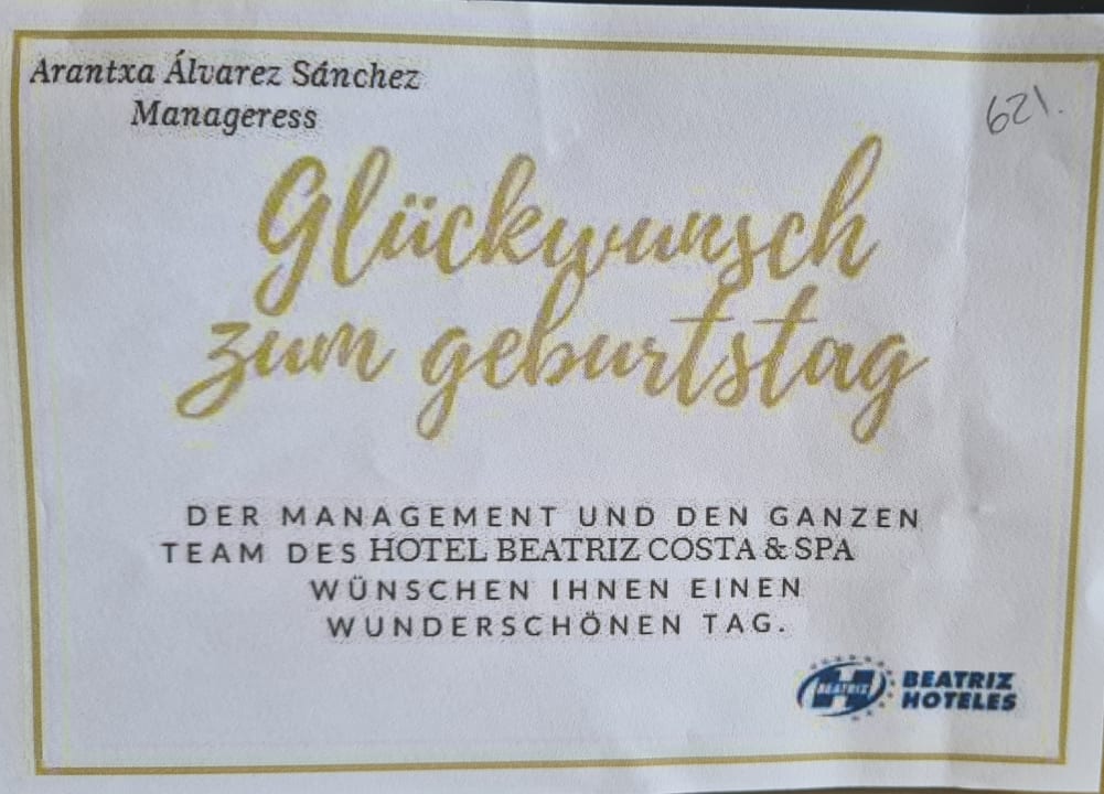 Geburtstagskarte vom Hotel.