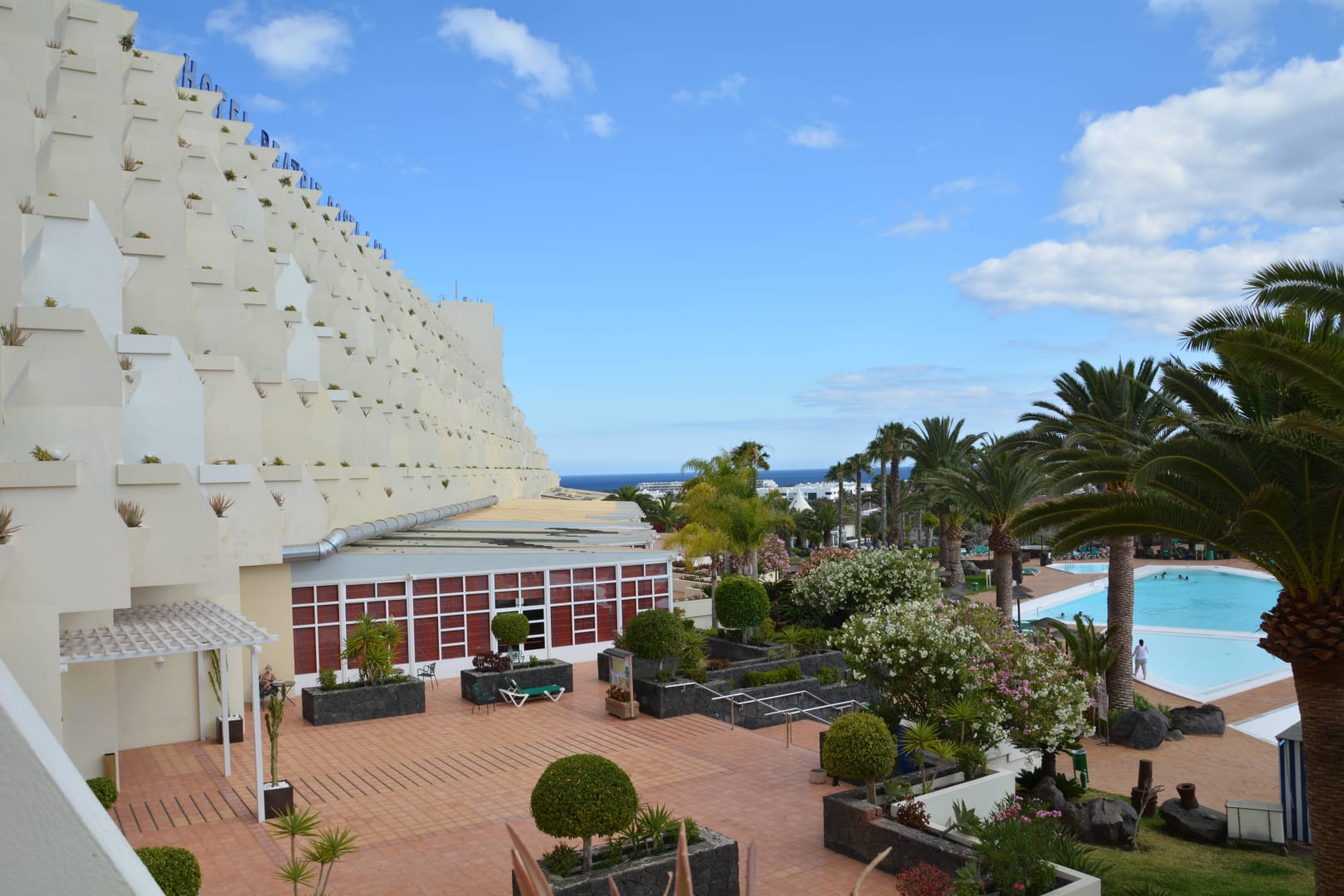 Das Hotel, im Hintergrund das Meer
