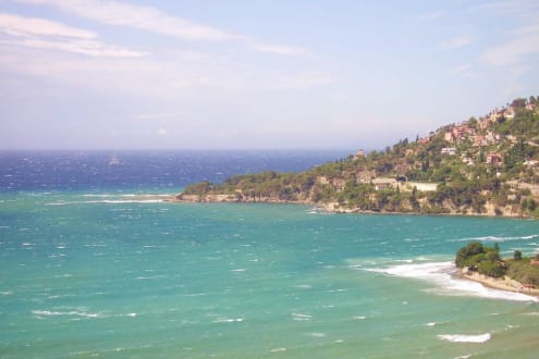 the day after wind was high, from my room window I shot this colourful image including the peninsula with the "Villa Hanbury" tropical botanical garden (the house with a square tower)