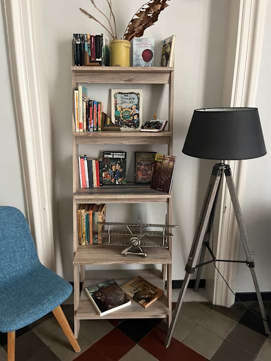 Antiquarische Bücher von Jules Verne in mehreren Sprachen als Dekoration.