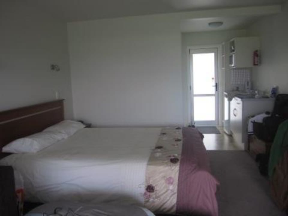 Zimmer mit DoppelbettHinten rechts ist der Küchenblock,