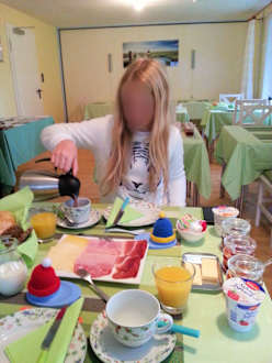 Frühstücksraum mit sehr leckerem Frühstück.