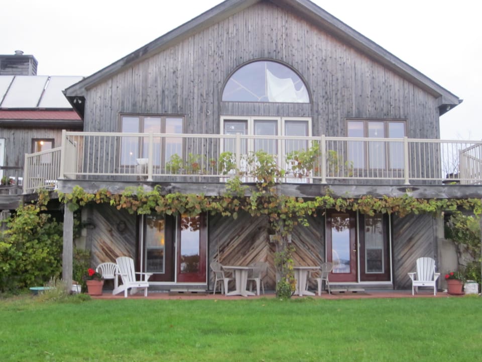 Vor den beiden ebenderdig gelegenen Gästezimmern gelangt man über eine überdachte Terrasse direkt in den Garten, der an einen Meeresausläufer der Northumberland Strait grenzt.