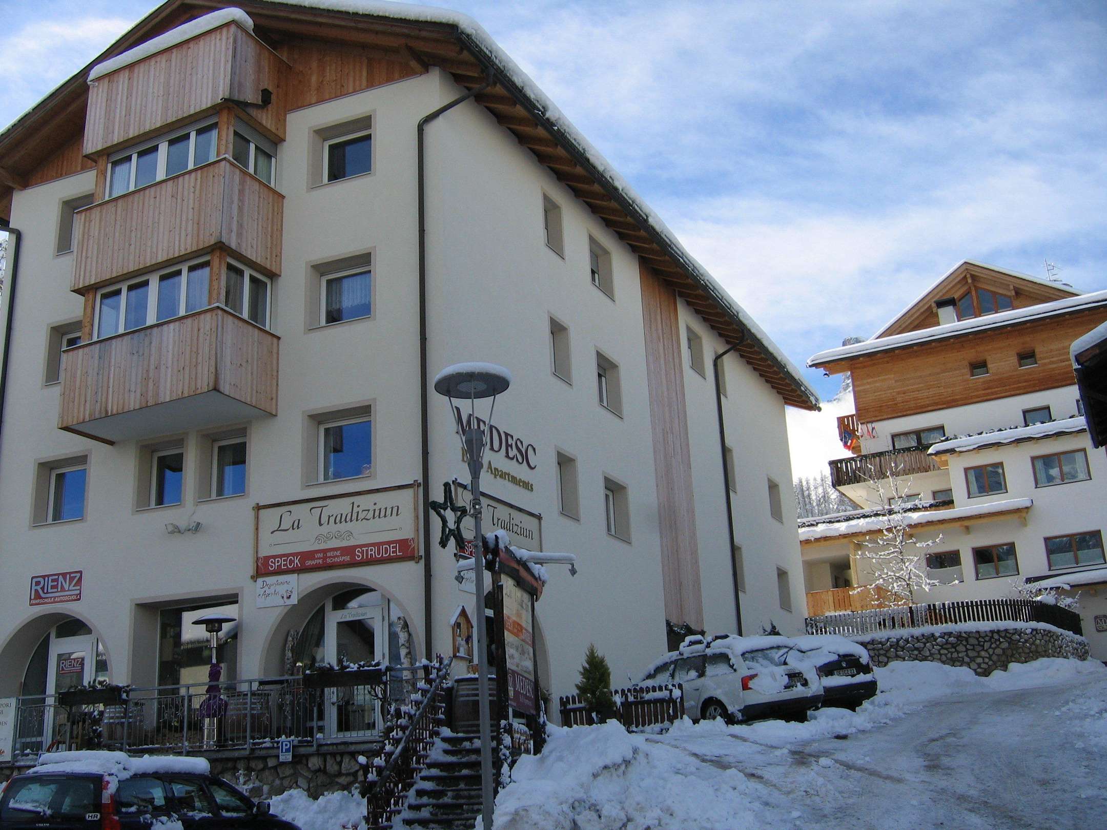 Vorn Appartmenthaus, oben Garnihotel