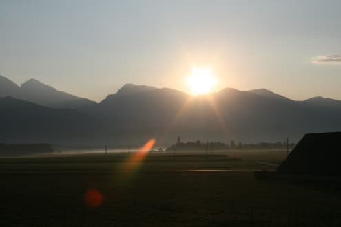 Ausblick nach dem Aufstehen beim Sonnenaufgang