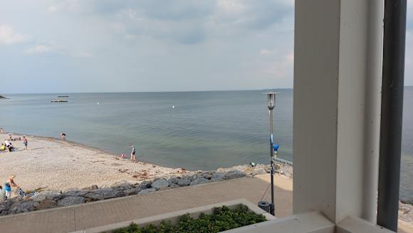Ausblick vom Balkon auf Strand und Ostsee