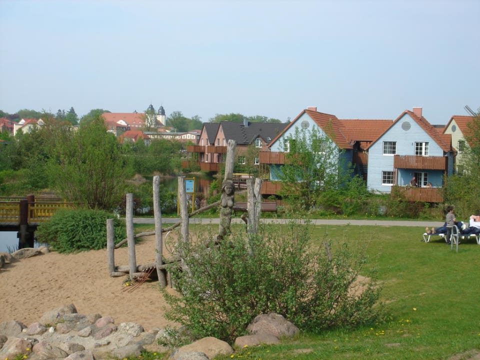 Blick über den SpielplatzBlick quer über den Spielplatz zu den Häsuern mit Seeterrasse