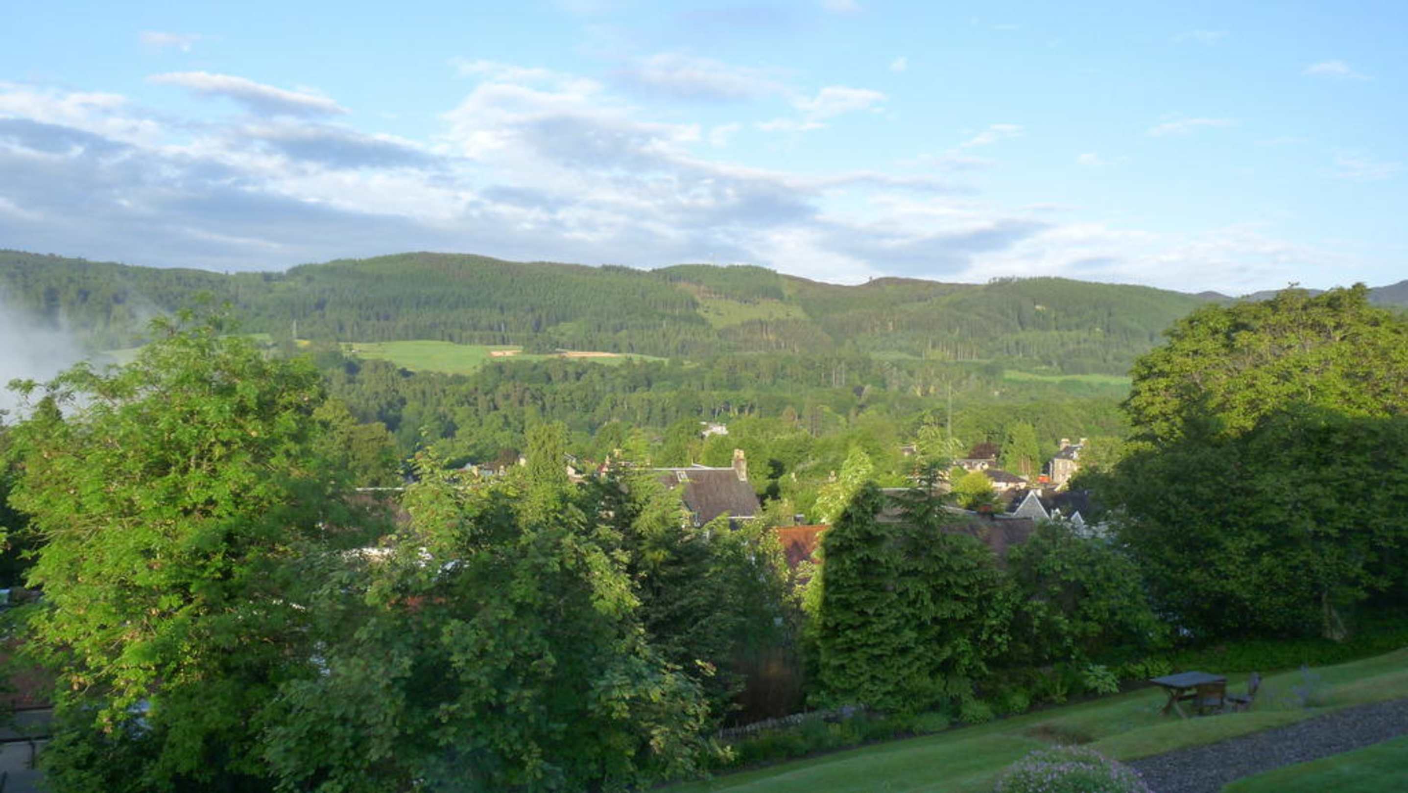 Blick aus dem Fenster auf Pitlochry