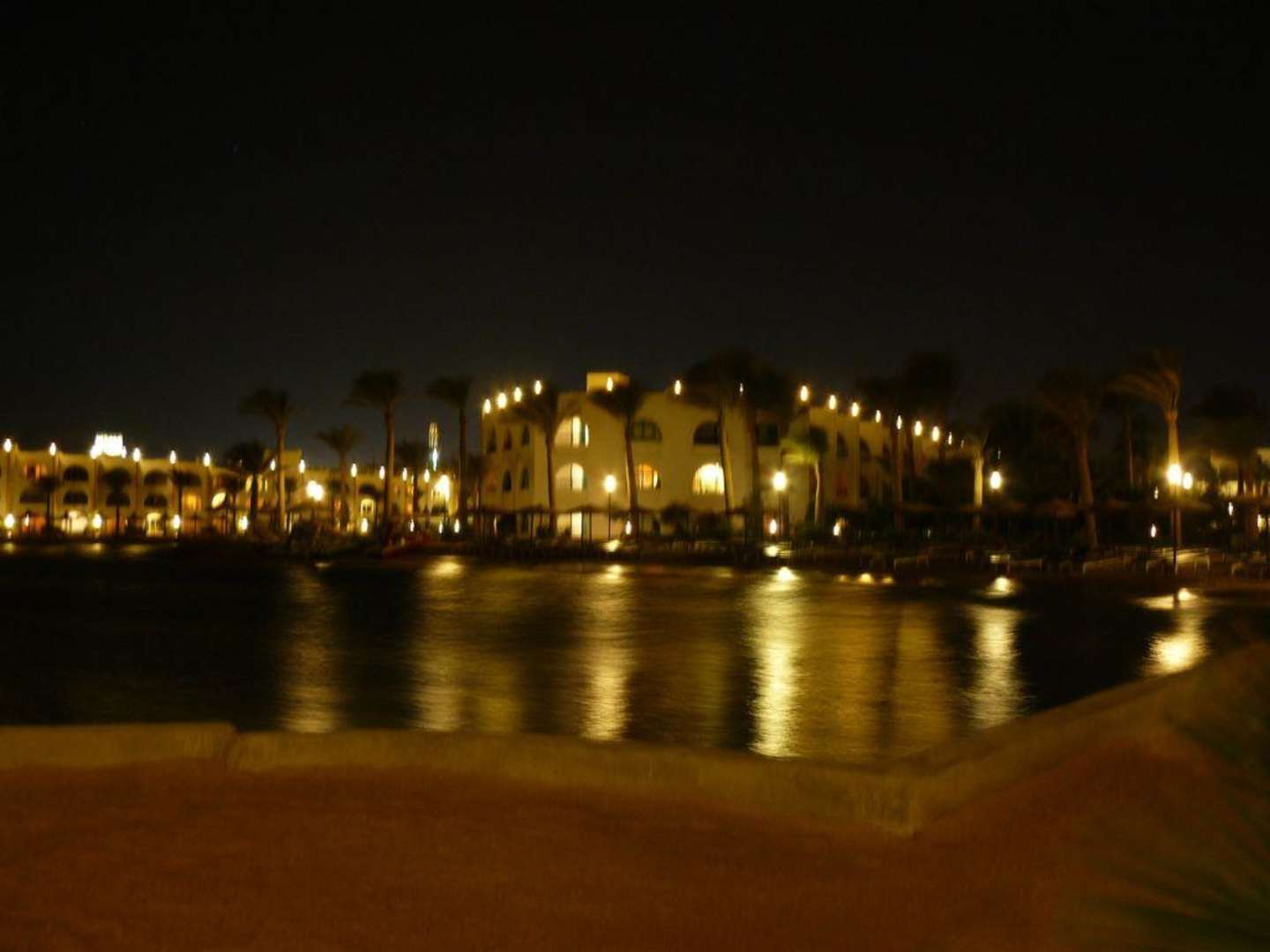 Das Schwesterhotel Araba nachts vom Strand aus