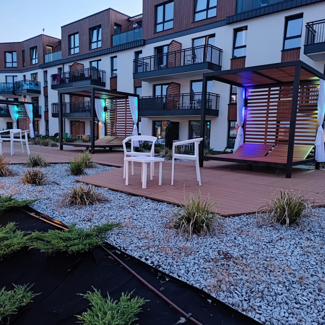 Extra Lounges zum Mieten. Hier kann man abhängen und sich bedienen lassen. (Innenhof)