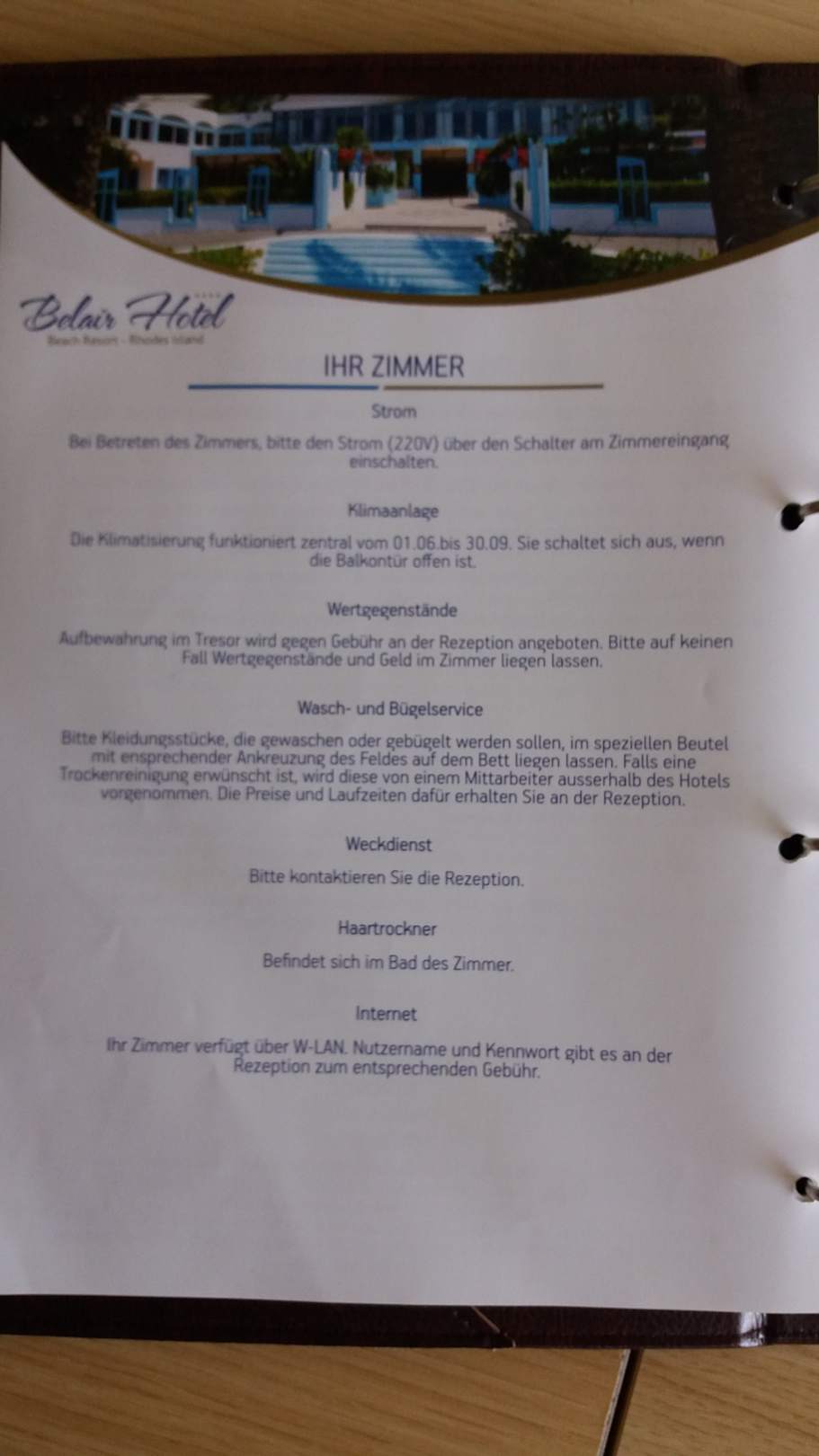 Die im Zimmer liegende Infomappe mit allen Zeiten