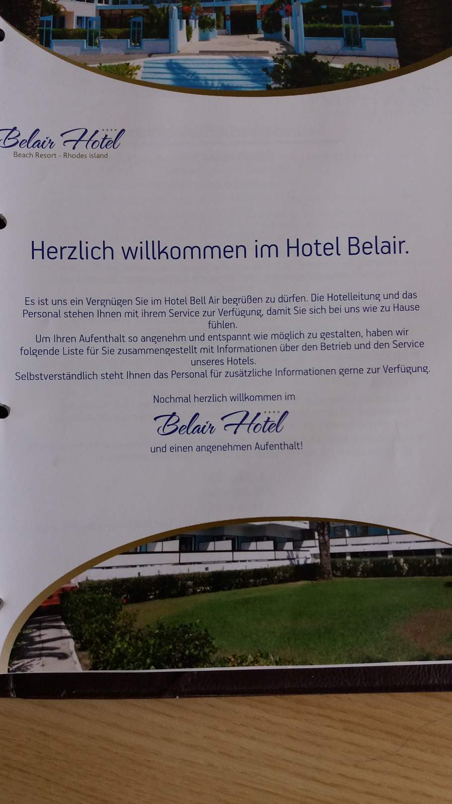 Die im Zimmer liegende Infomappe mit allen Zeiten