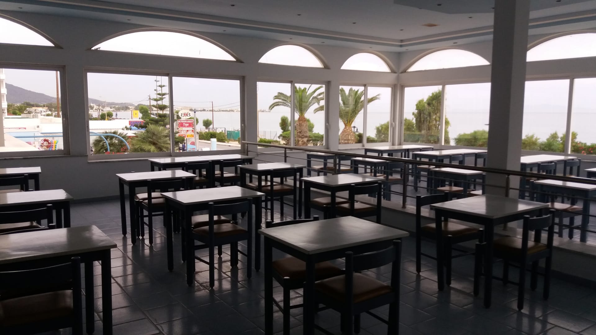 Der Blick von der hinteren Poolbar zur Straße