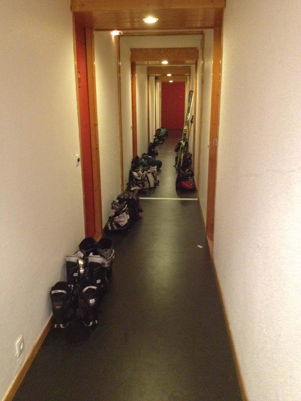 Weil die Skischränke so klein sind, haben alle ihre Stiefel auf den Flur gestellt.