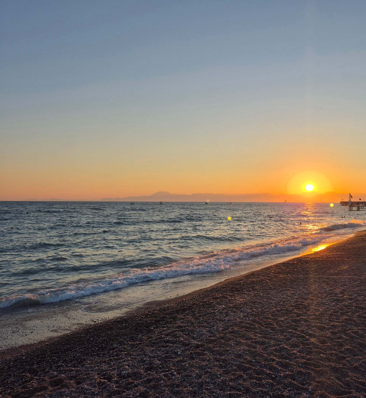 recht steinger Strand am Wasser, im Liegebereich ist wohl Sand aufgeschüttet worden.