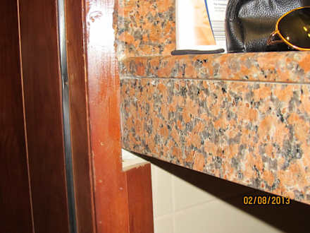 Zimmer 6102Waschbecken an Türrahmen angepasst,wurde einfach der Türrahmen kurzerhand krumm und schief ausgesägt !